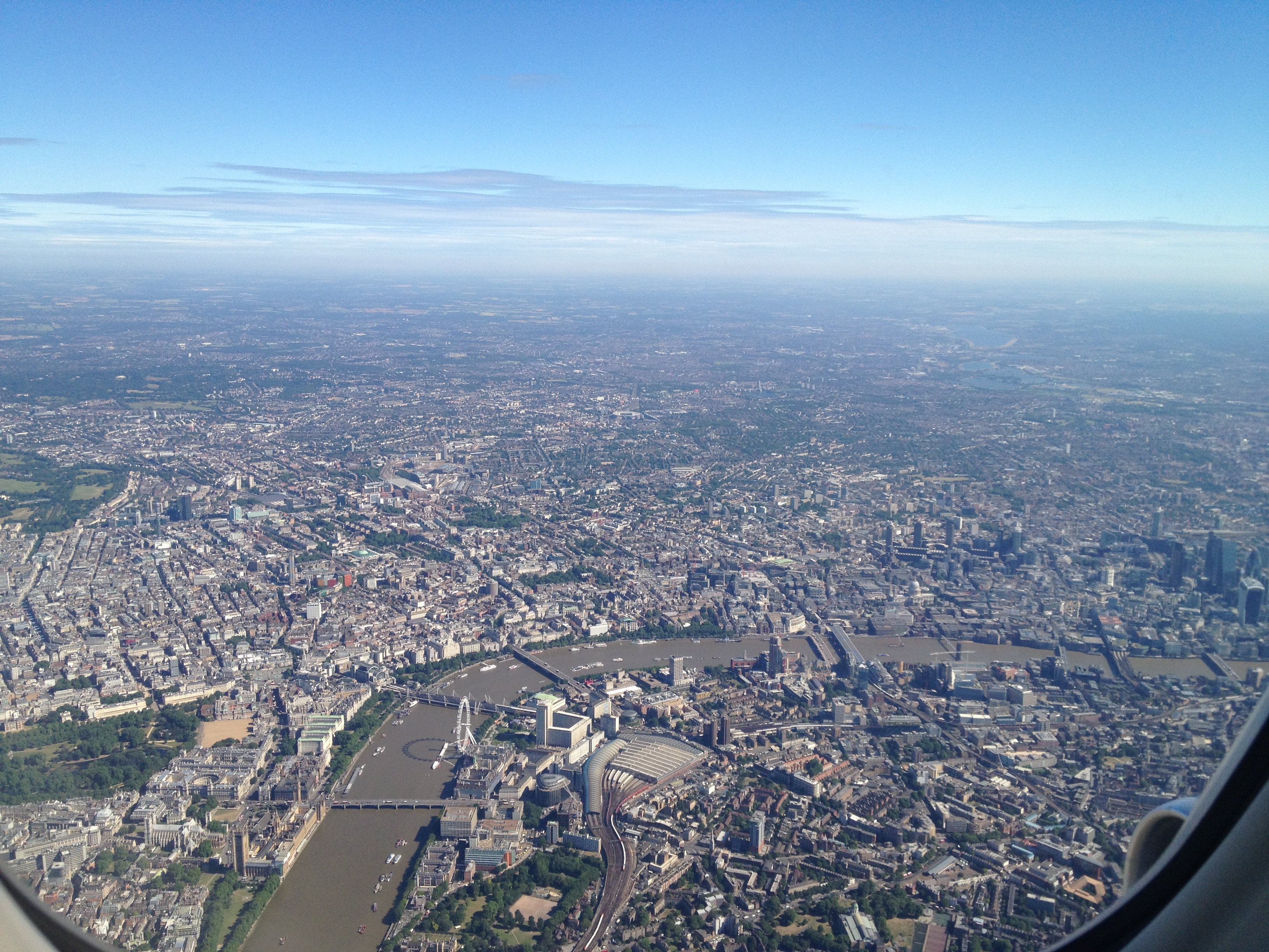 Other than the flight attendant keeping the lights on ALL flight so no one could get some sleep, and the service spotty given there are only 20 of us to server, the flight was fairly uneventful. We did get delayed flying into Heathrow, so got some good pictures of flying over London…