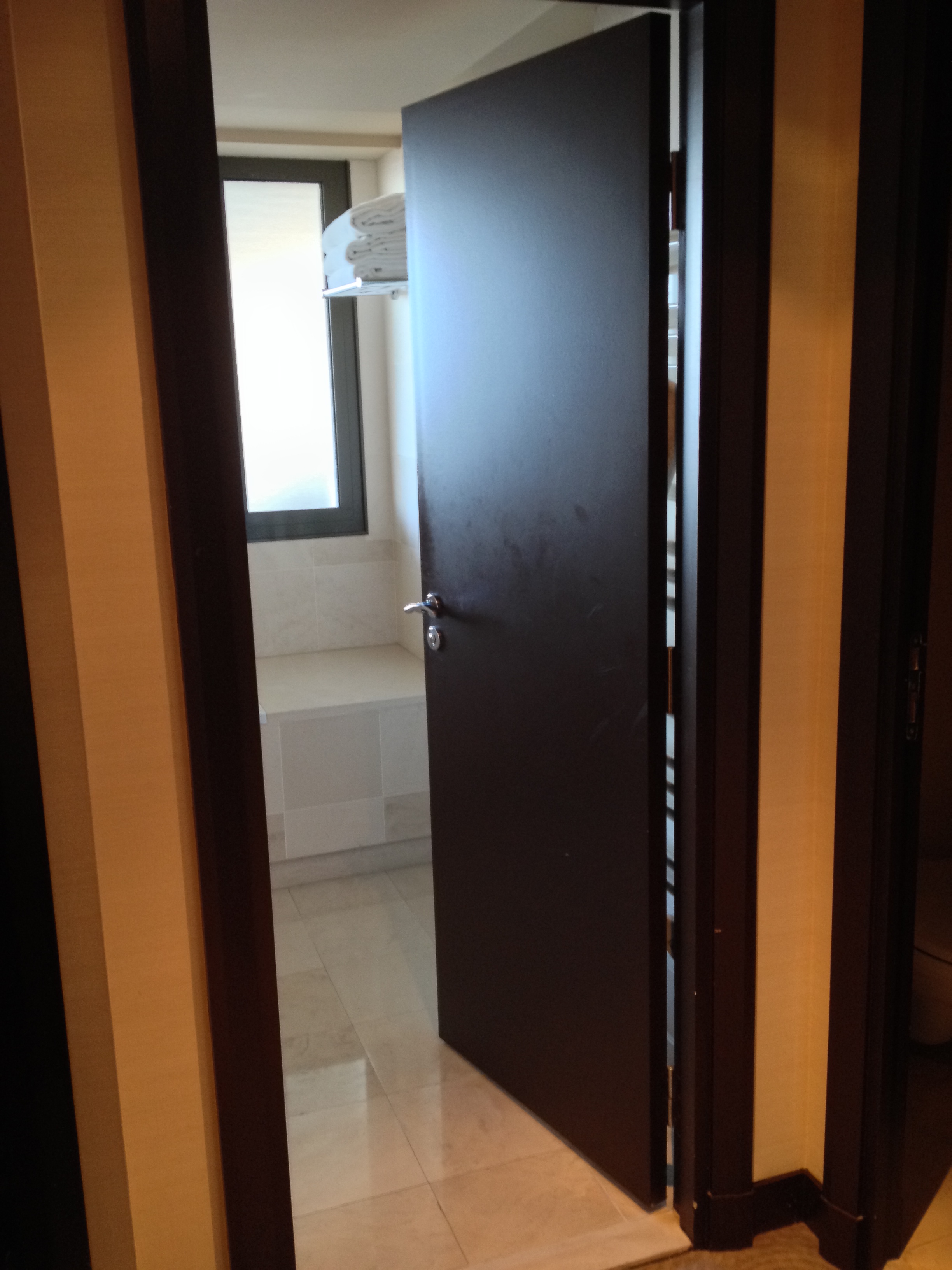 Once quickly checked in, we proceeded to our King room on the upper floor, which was very spacious with a large balcony that overlooked the pool below and a tiny view of the ocean through the pillars. Here is the entrance to our room: