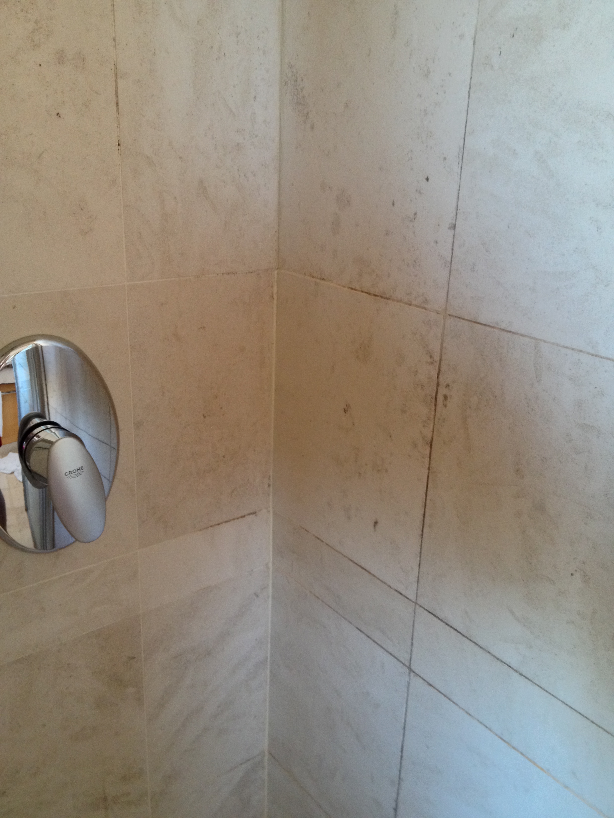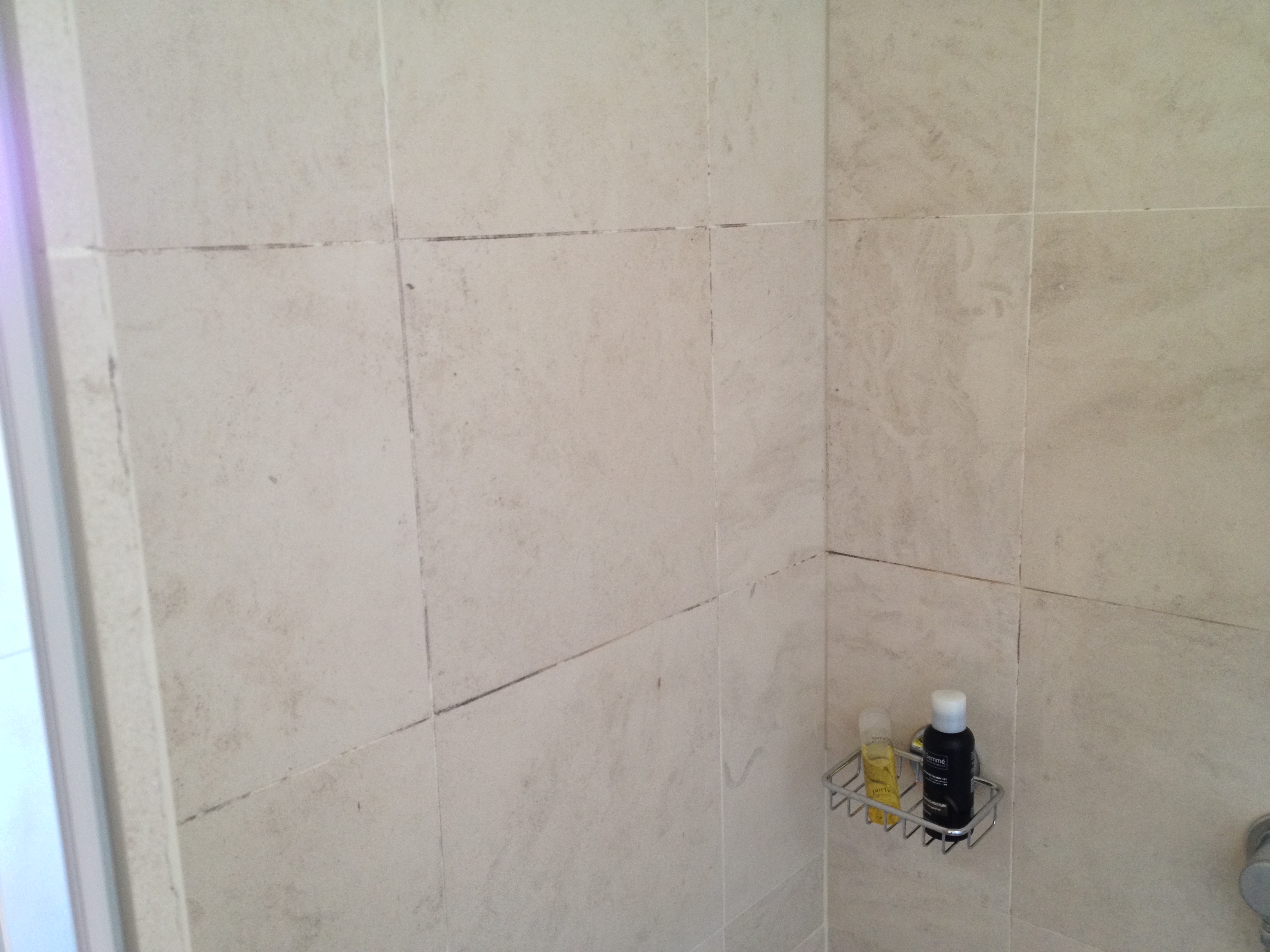 Another issue we complained about, but was never fully corrected, was the very dirty walk-in shower with mold all over the walls. This was your typical mold that wasn’t wiped down in the last few days, this was mold that was caked onto the shower walls for weeks, if not months, that the cleaning crew did not address. Very gross. Here are some pictures of the black mold on the walls: