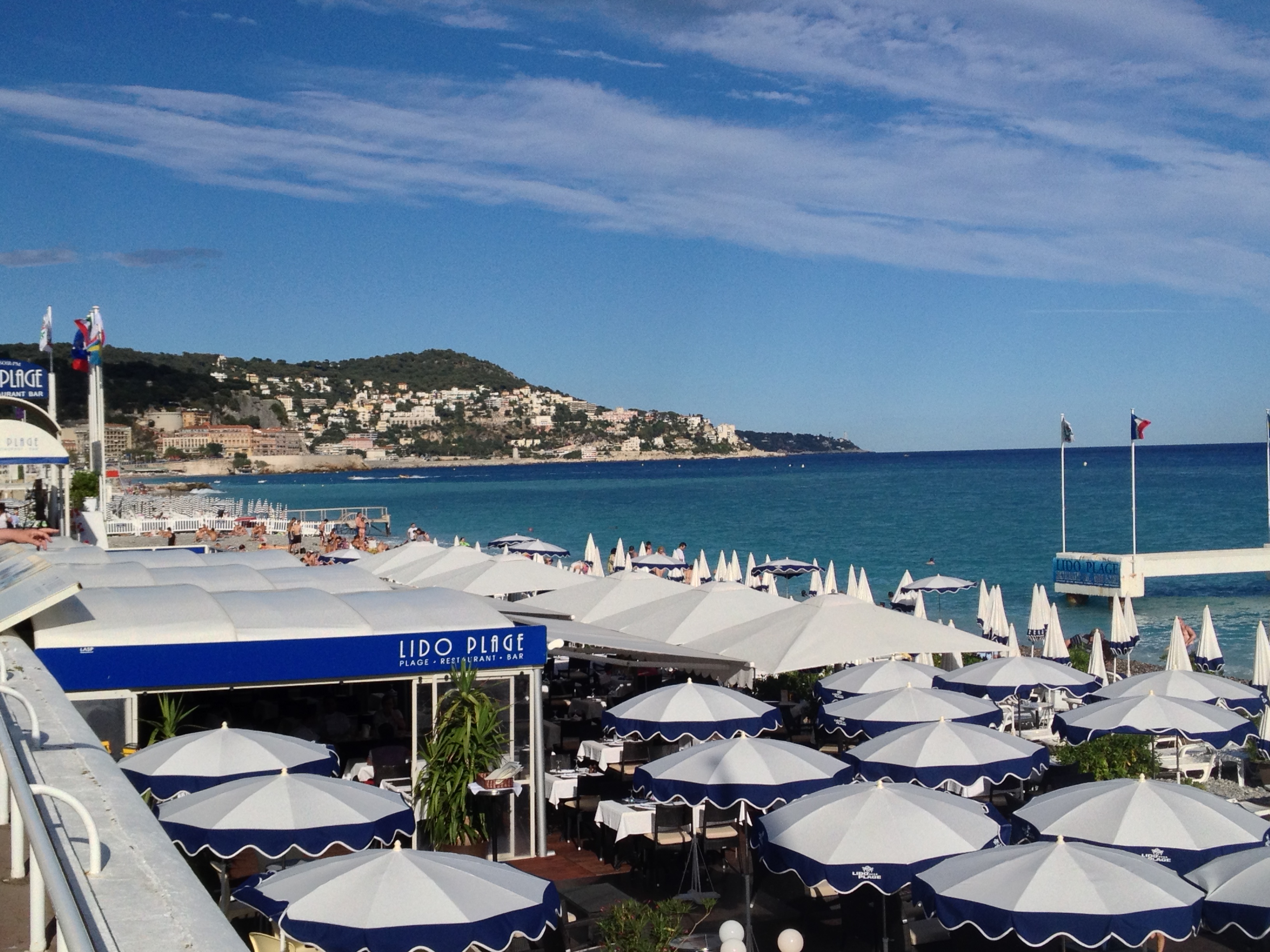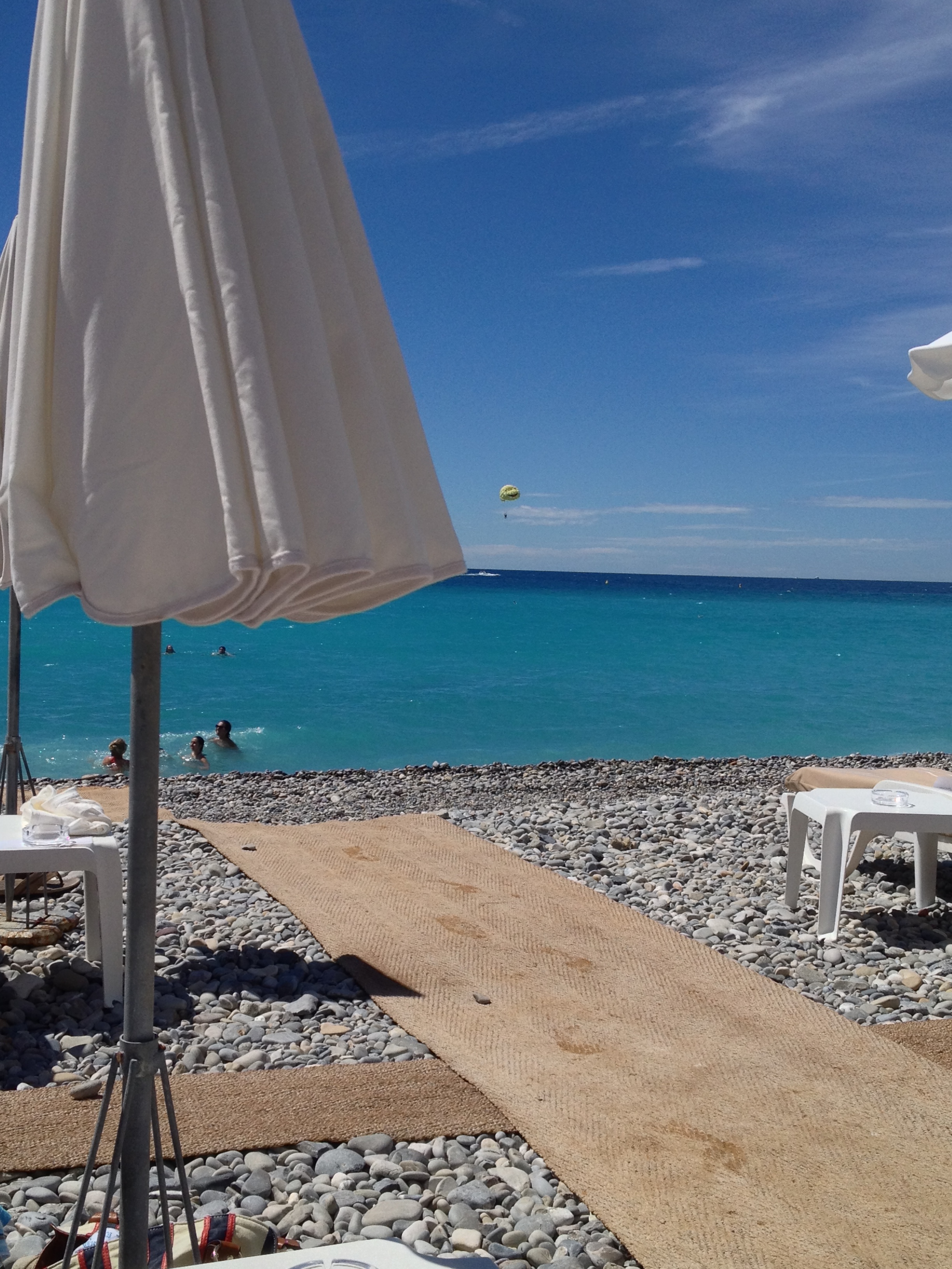 Note – bring your water shoes when in Nice because the beach is nothing but large rounded rocks to walk on. The beach club provides this walkway, but shoes are still necessary when walking around. There were many who braved going into the water without shoes, but it is tuff to walk on. Especially for children.