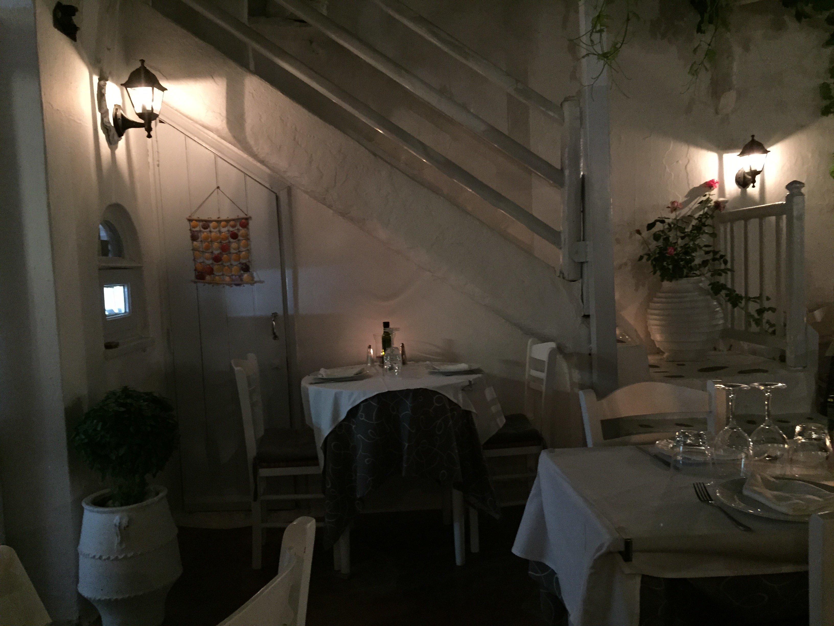 Upon searching reviews on TripAdvisor, I found this little gem which was my best overall meal in Mykonos. If fact, so much so that I ate here for my last dinner in Mykonos. The place is super romantic. You’re literally sitting in an outdoor garden of an old home. Seating is at street level and upstairs. I preferred street level for you can look up passed the greenery hanging from above and see the stars shining above. It’s such a great place.
