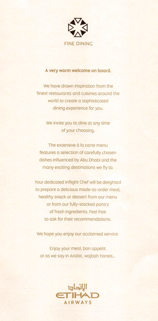 One thought on “Etihad A380 First Class Apartment Menu – Abu Dhabi (AUH) to New York (JFK)”