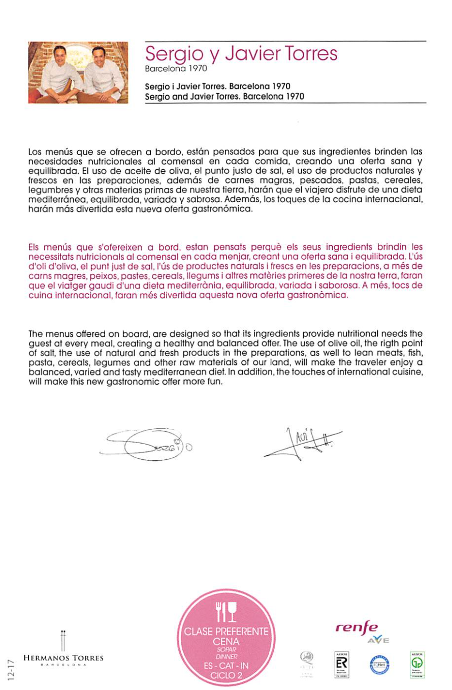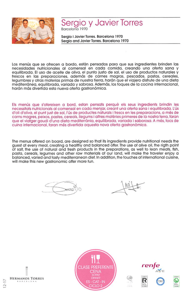 Renfe AVE Preferente (First Class) – Barcelona to Madrid – Dinner Menu Posted bythepointmasterOctober 29, 2018August 27, 2020Posted inFood, Travel Share this: Share on X (Opens in new window) X Share on Facebook (Opens in new window) Facebook Like Loading... Related
