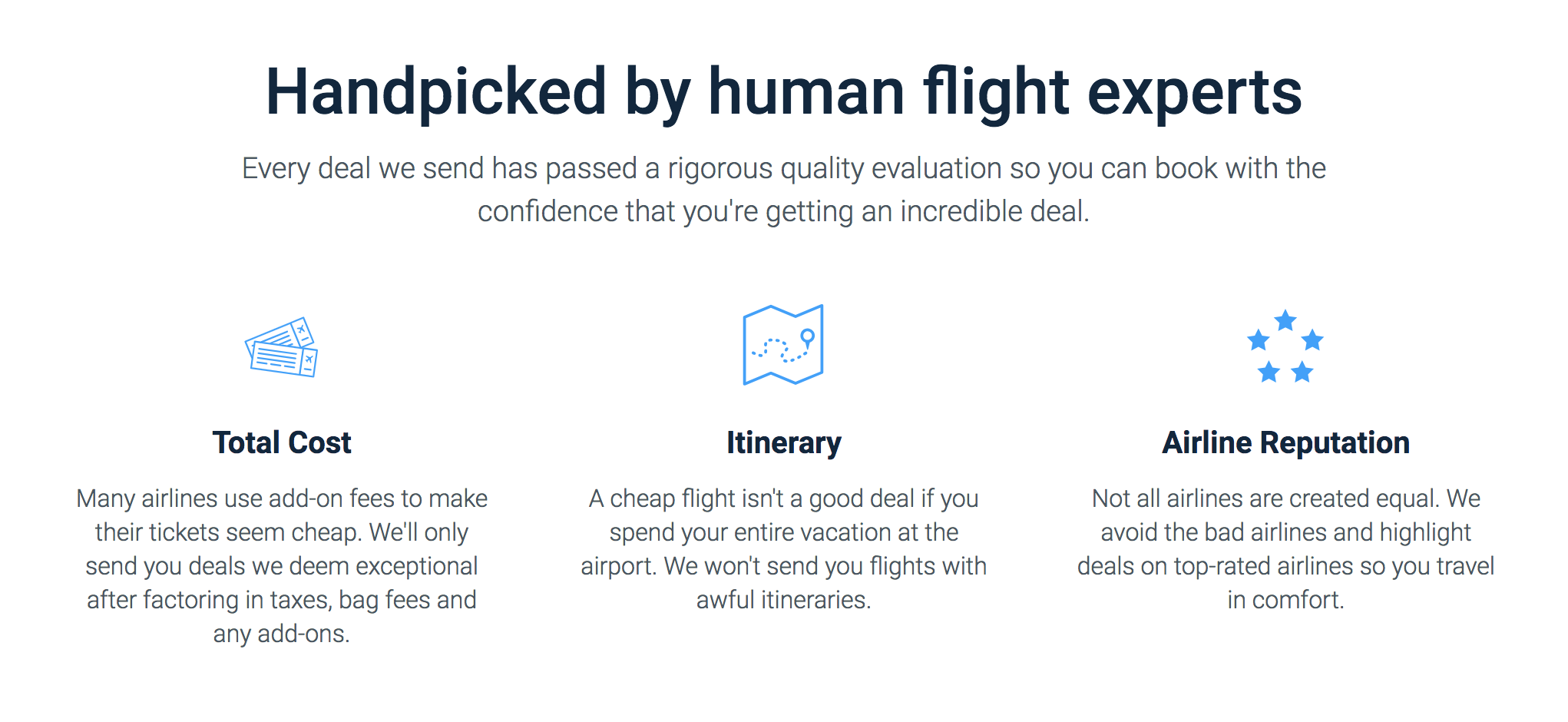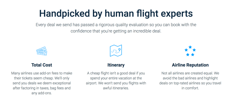 Unlike fully automated fare alerts, every deal we alert members to has passed a rigorous quality evaluation by our team to ensure it’s worth your hard-earned money and limited travel time. That’s right, huge discounts and mistake fares are sent right to your inbox!
