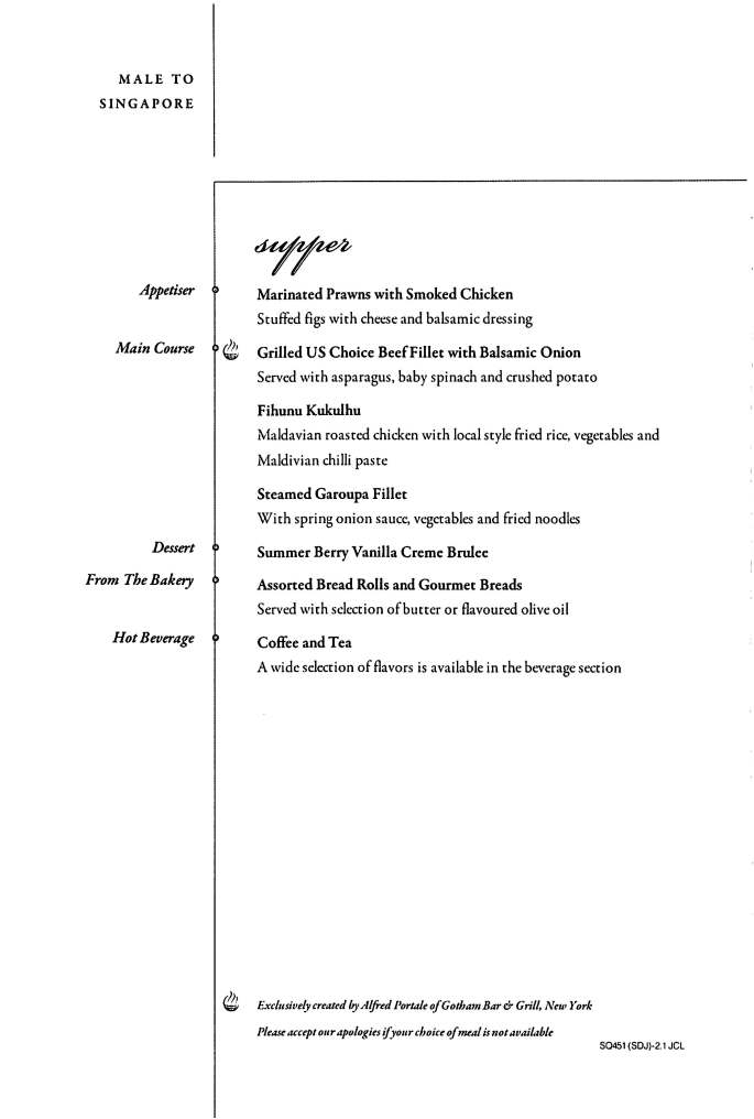 One thought on “Singapore Business Class Menu – Male (MLE) to Singapore (SIN)”