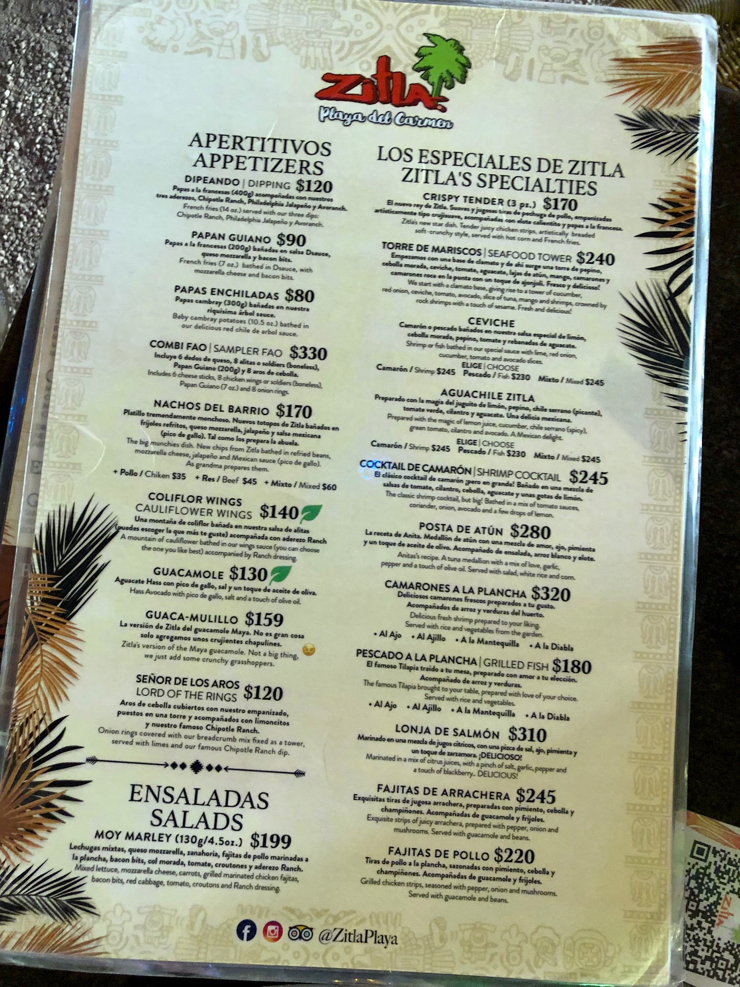 Zitla Mexican Restaurant Menu – Playa Del Carmen (pg1)